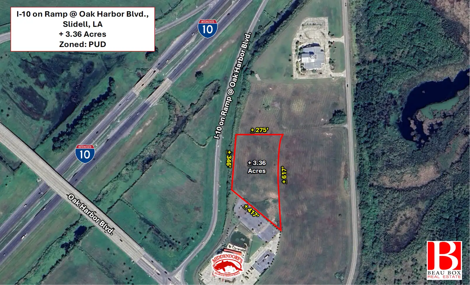 Surrounded by strong traffic drivers including the adjacent Middendorf’s Restaurant, and nearby Eden Isle and Lakeshore Village communities, the site captures both local and commuter traffic.