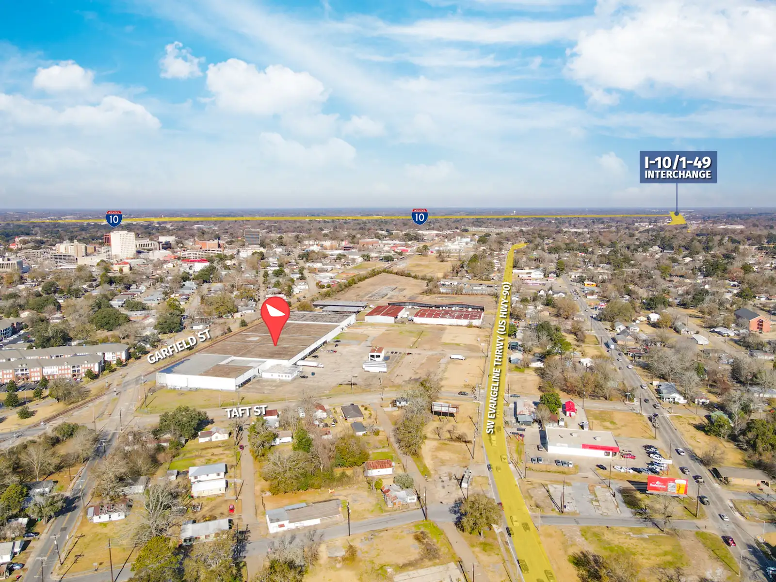Located on Evangeline Thwy with close proximity to I-10, the site provides efficient access to regional transportation corridors, supporting logistics and distribution activity throughout the area.