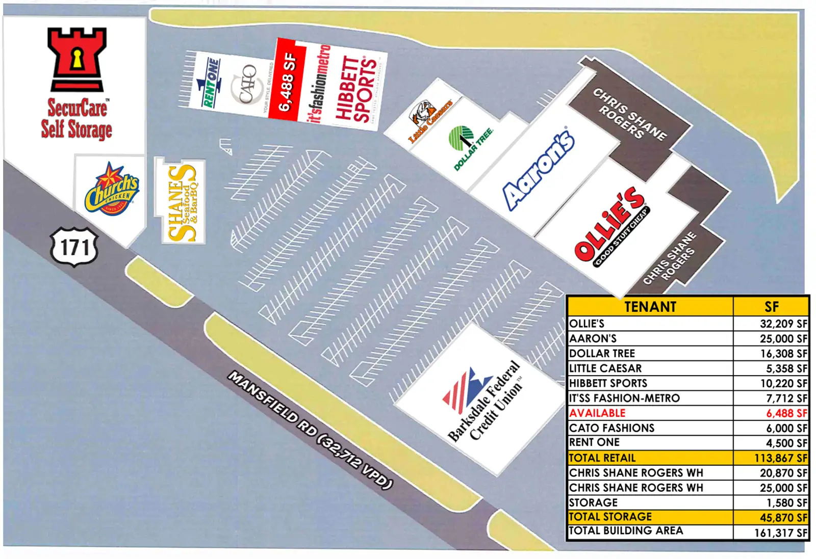 - Co Tenants: Dollar Tree, Ollie’s, Aarons, Hibbett, Cato and others