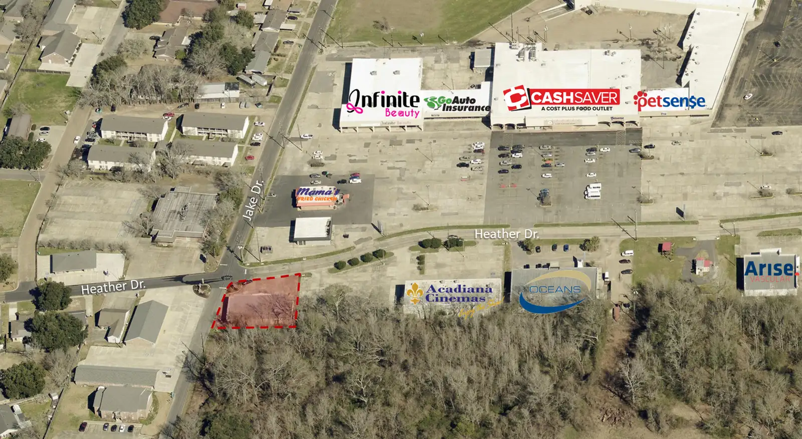 Small strip center in excellent location available for purchase and/or lease. Located at the corner of Heather Dr. and Jake Dr. this property is adjacent to St. Landry Cinema, the only theater in Opelousas, and across the street from St. Landry Plaza, a 200,000 sq ft shopping center featuring Hobby Lobby, Ollie’s, Brown’s Furniture, Cash Saver Grocery, Pets Sense, and more!