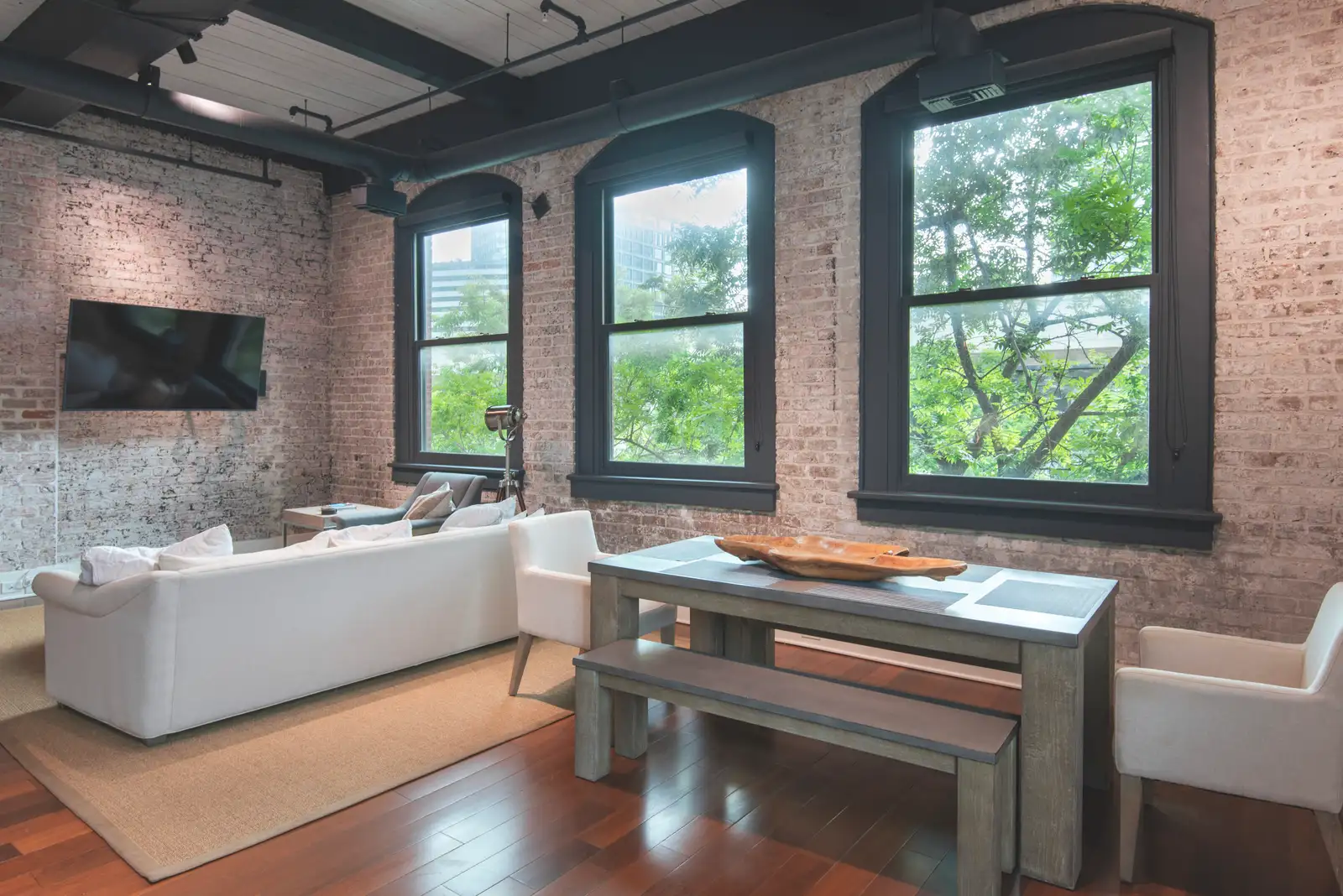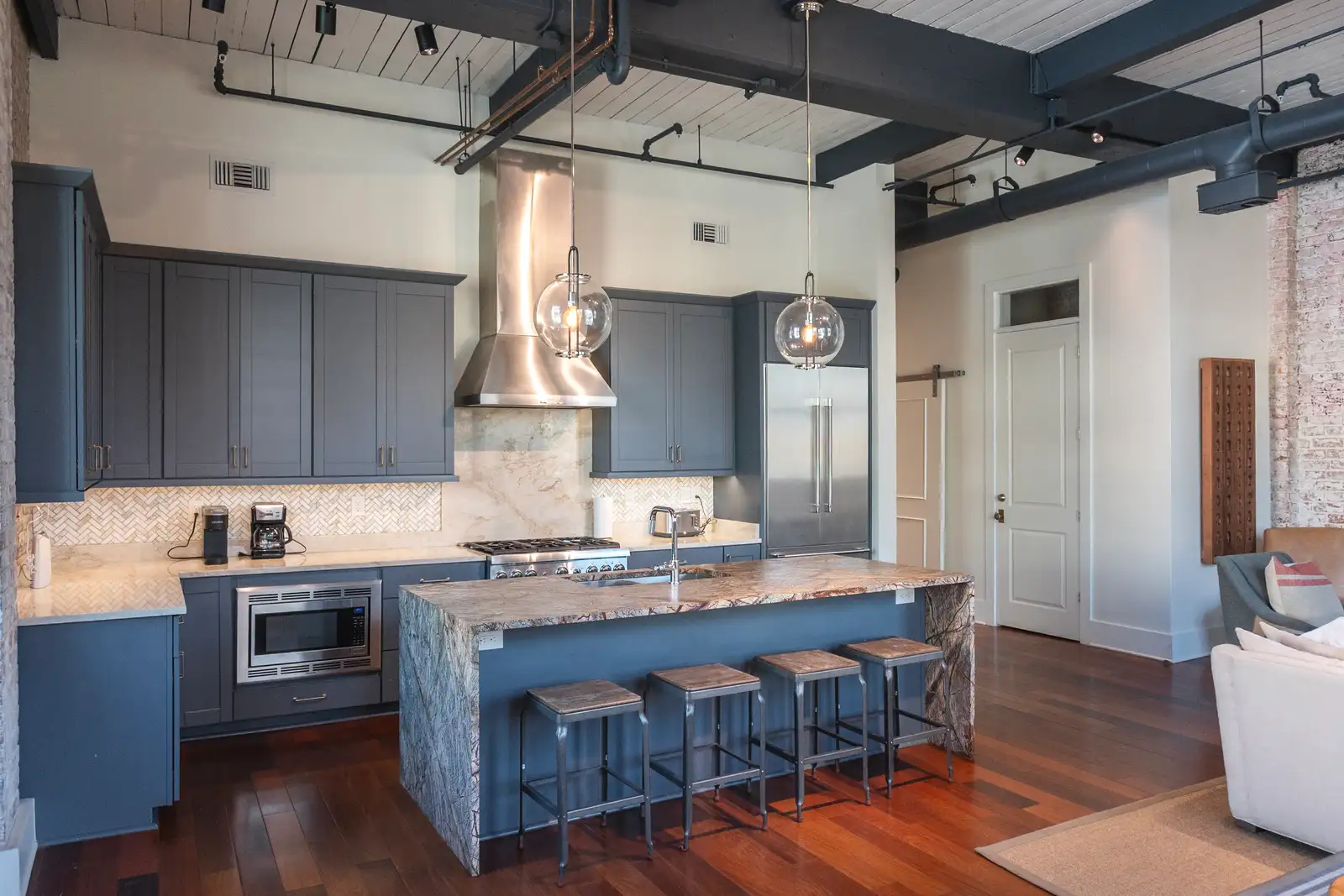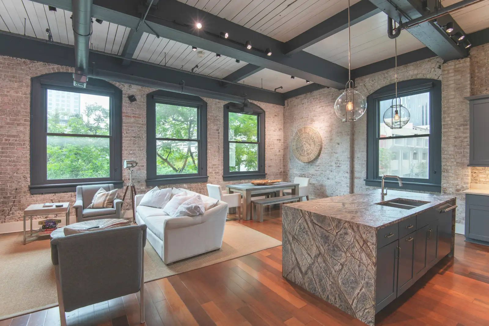 Converted from a historic warehouse and tastefully renovated in 2020, the building features only three residential units, each occupying its own full floor. The interior blends the building’s original architectural charm - exposed bricks, wood beams, and oversized industrial windows - with high-end modern finishes throughout. Highlights include Brazilian walnut floors, custom marble and granite surfaces, professional-grade Thermador appliances with gas cooking, dual-zone Nest-controlled HVAC, and designer Delta and Brizo fixtures. Custom double-hung, double-paned windows provide exceptional natural light, comfort, and energy efficiency.