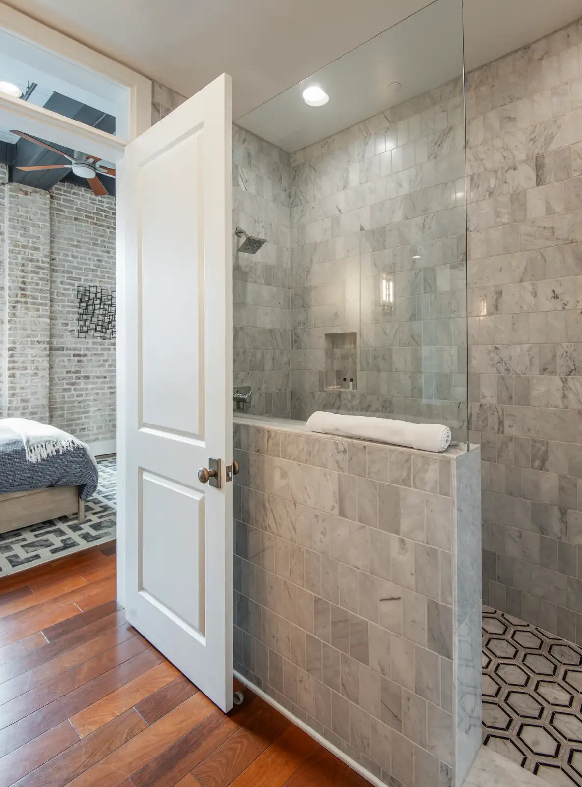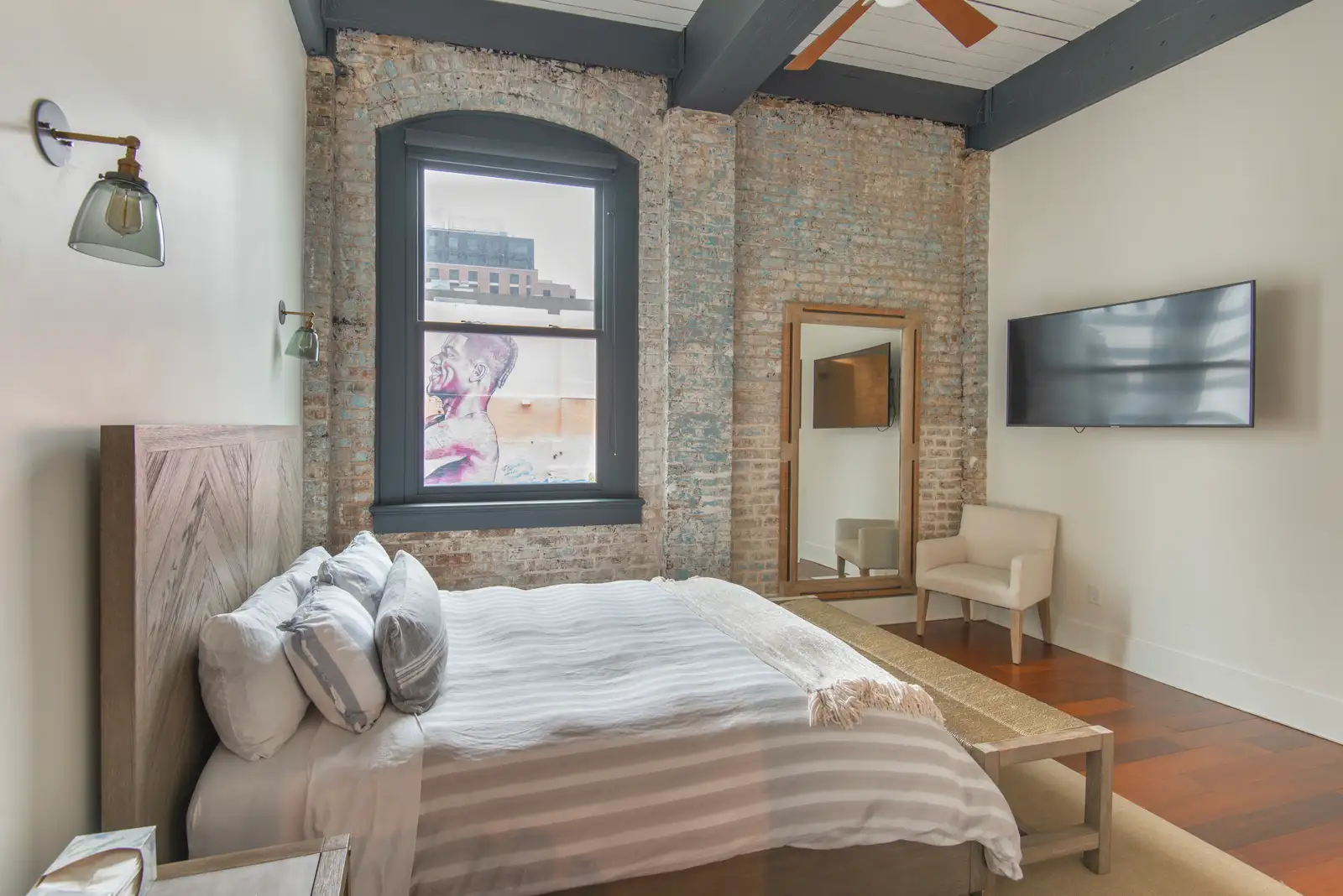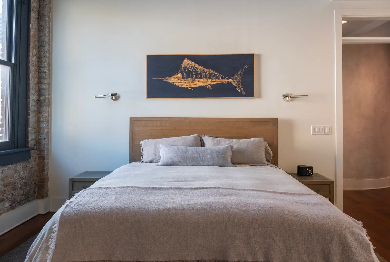 Converted from a historic warehouse and tastefully renovated in 2020, the building features only three residential units, each occupying its own full floor. The interior blends the building’s original architectural charm - exposed bricks, wood beams, and oversized industrial windows - with high-end modern finishes throughout. Highlights include Brazilian walnut floors, custom marble and granite surfaces, professional-grade Thermador appliances with gas cooking, dual-zone Nest-controlled HVAC, and designer Delta and Brizo fixtures. Custom double-hung, double-paned windows provide exceptional natural light, comfort, and energy efficiency.