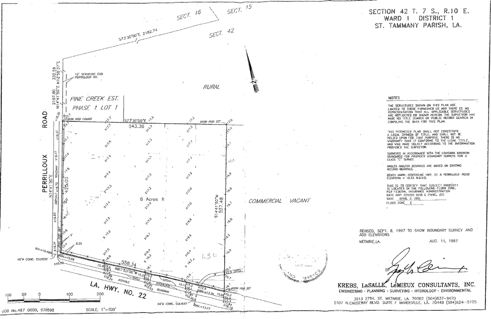 Northeast corner of Hwy 22 and Perrilloux Rd. Heavy traffic area with new construction across the street featuring Dominos, Gameday Cuts and Integrity PT. Lancaster Elementary school is adjoining rear property line.