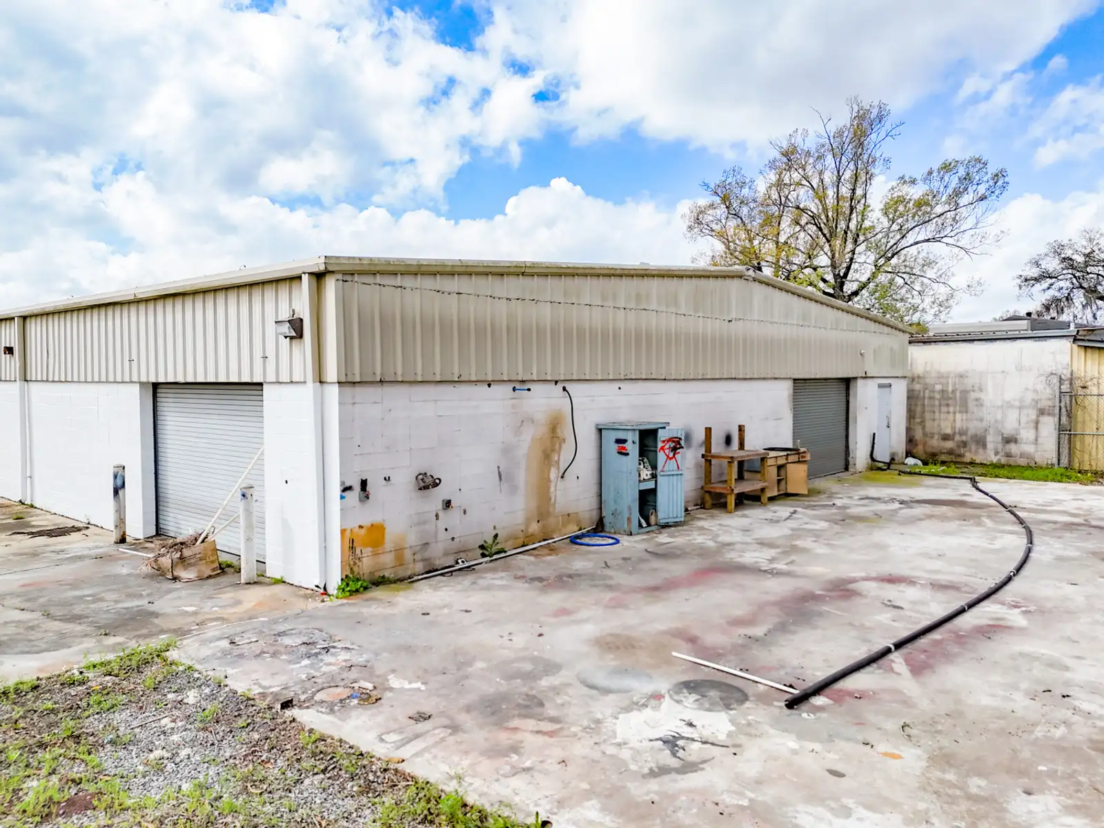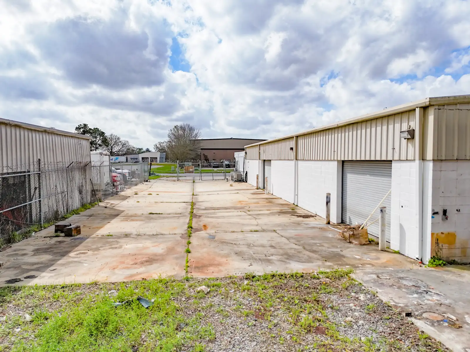 - Small fenced laydown yard in the rear