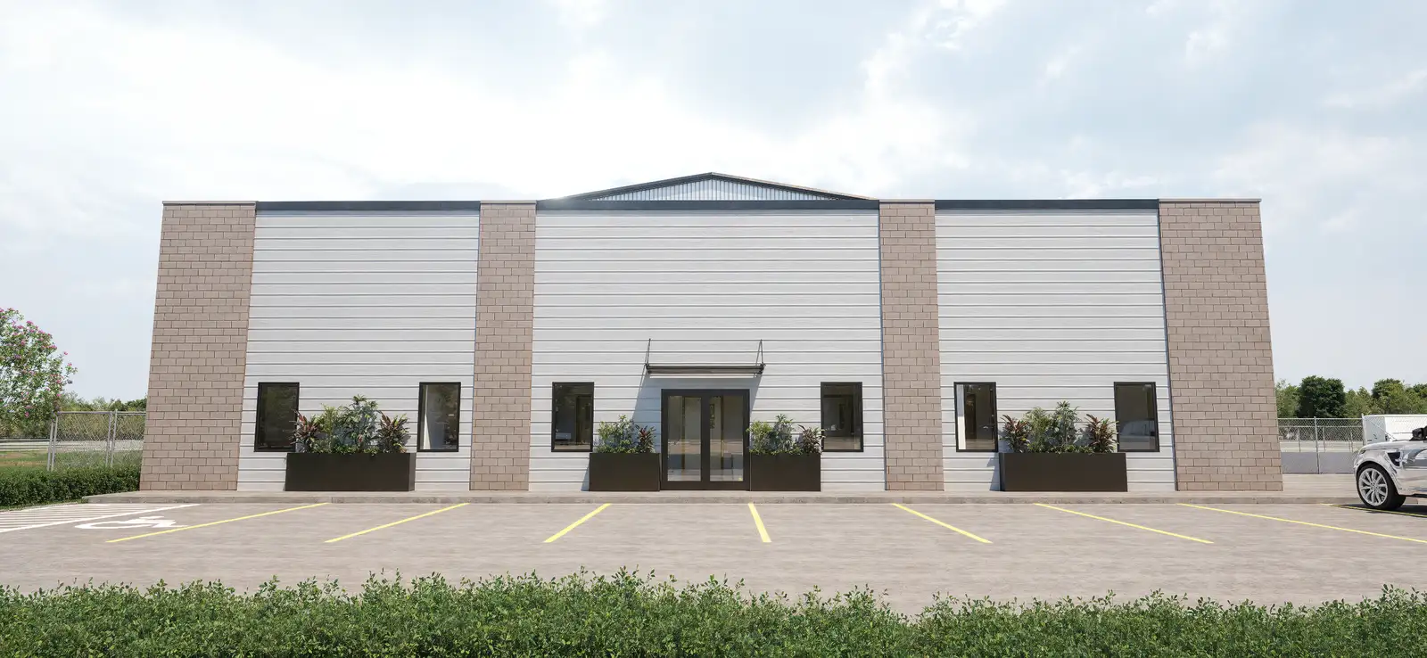 New construction, available Q2 of 2026. Industrial Office Space. Less than 1 mile from I-10. 10,000 total SF. 2,500 SF office and 7,500 SF warehouse. 1/2 acre fenced laydown yard. Light Industrial Zoning. Listed at $16/SF, NNN. Renderings attached in documents.