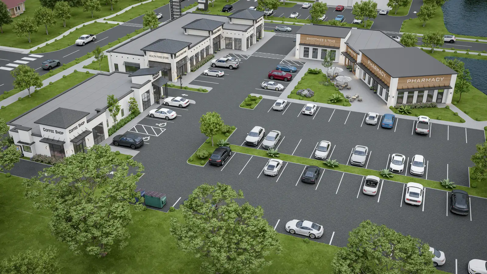Parc Bonin is designed to create more than just commercial space—it offers a destination experience. The site will feature scenic ponds, a pedestrian bridge connecting key areas, gathering spaces, and direct connectivity to Sugar Mill Pond, all enhancing foot traffic and creating a vibrant, walkable environment for customers and tenants alike. A prominent monument sign will provide excellent visibility and branding along Bonin Road.