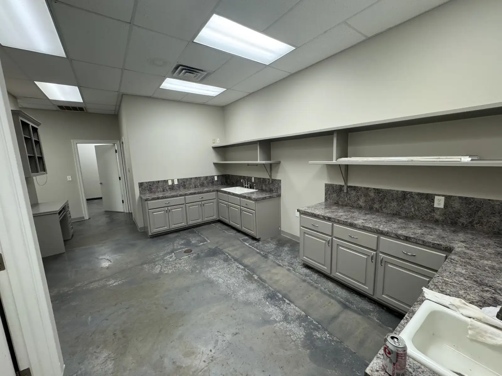 Former veterinary clinic build out offering adaptable interior improvements and existing plumbing