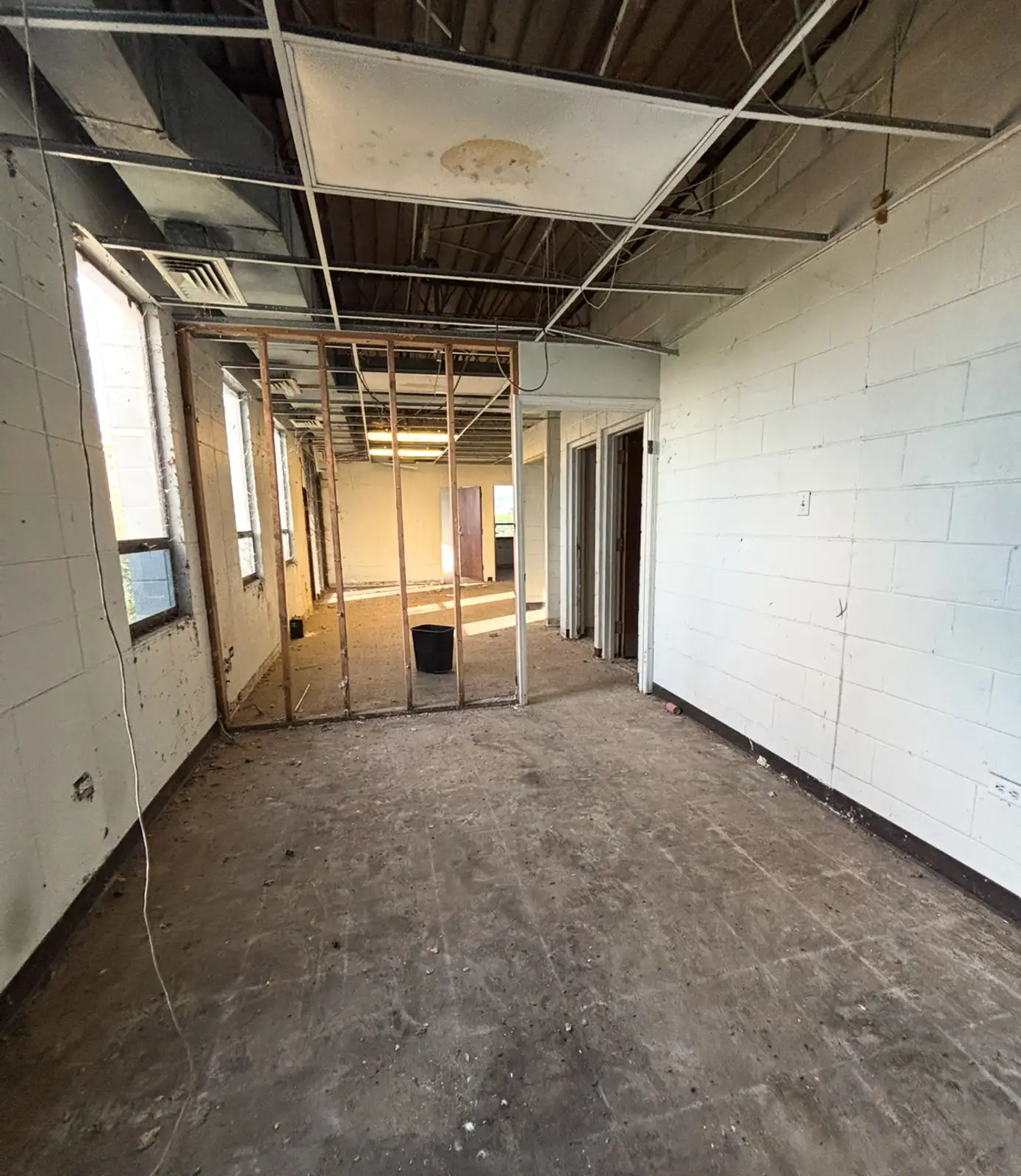 office area needs work. The seller is currently storing cotton in this warehouse and will
