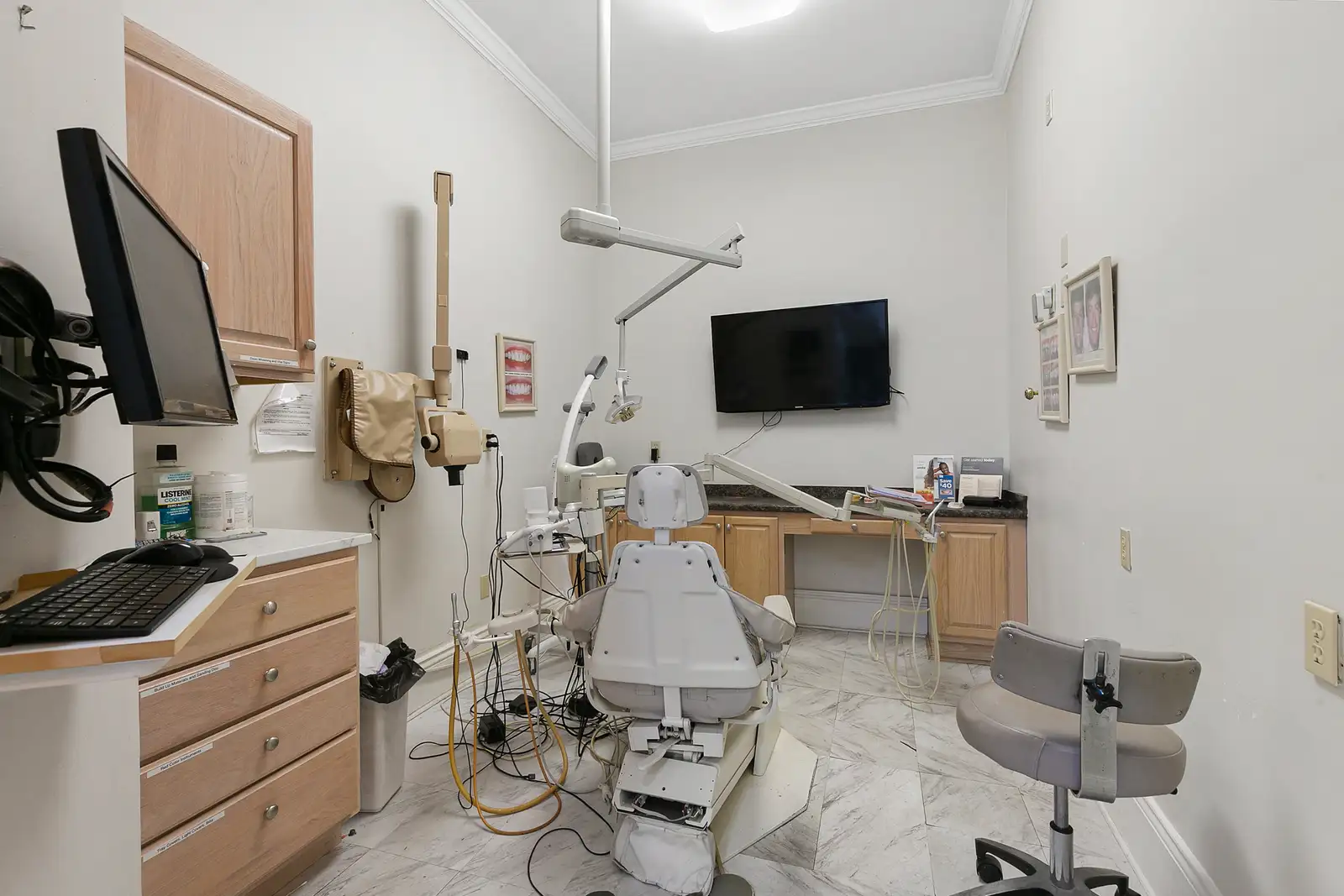 The improvements include 801 S. Carrollton (±1,052 SF), currently occupied by a salon; 807 S. Carrollton (±1,478 SF), operating as a chiropractic office; 813 S. Carrollton (±1,380 SF), leased to a law office through 2026; and 8025 Maple Street (±1,693 SF), home to a dental practice with a lease extending through 2026. Collectively, the tenant base has demonstrated exceptional longevity—several occupants have maintained their businesses at this location since the mid-1980s.