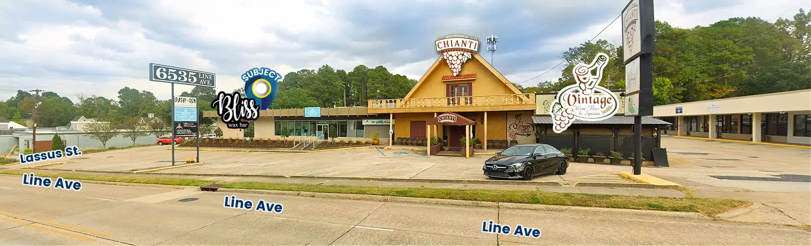 A 2,500 SF retail space on Line Avenue, in the same building as Chianti Restaurant and Vintage Bar, offering strong visibility at the Line Ave/Lassus corner. The location sits just south of Line and Pierremont, under five minutes from I-49 and close to Youree Drive, placing it in the heart of Shreveport’s premier retail and residential corridor with roughly 180,000 residents within five miles. The space is currently built out as a salon, but is flexible for a range of uses. Neighboring tenants include Chianti Restaurant, Pattern Play, Bliss Wax Bar, Vintage Wine and Spirits, Sushi Gen, Southern Luxe Co., and SBC Massage Academy. Lease rate is $12.00/SF/YR (MG) with an additional $3.50/SF/YR for taxes, insurance, and utilities.