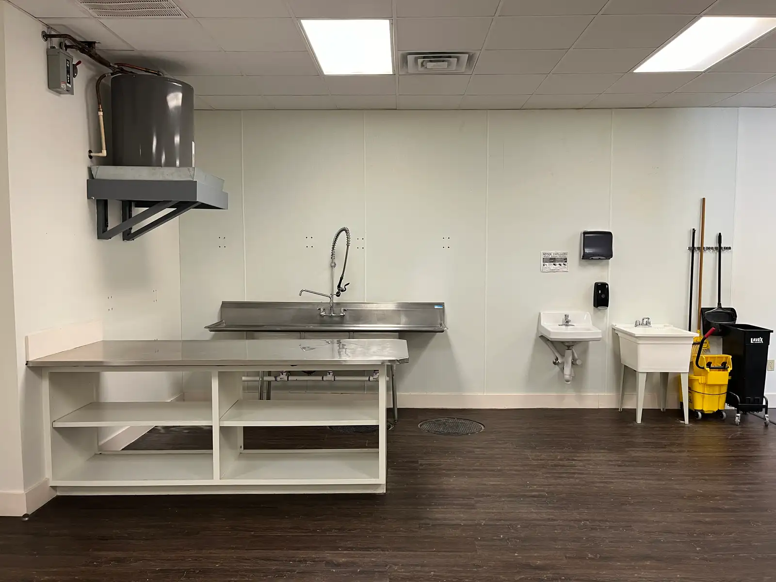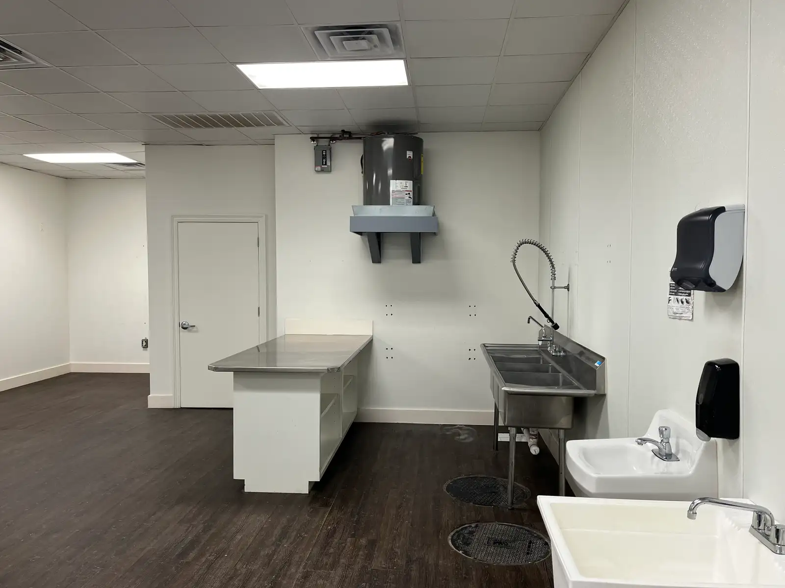 - KITCHEN AREA WITH SINKS AND GREASE TRAP