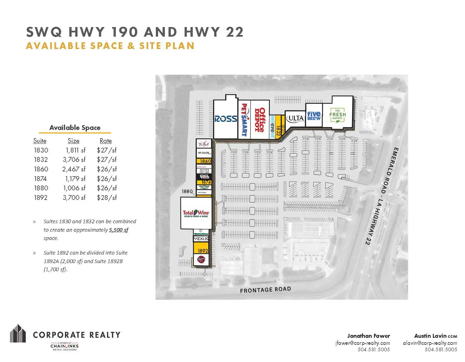 | Suite 1892-B | $28 /SF/Year | 1,700 - 3,700 SF | |