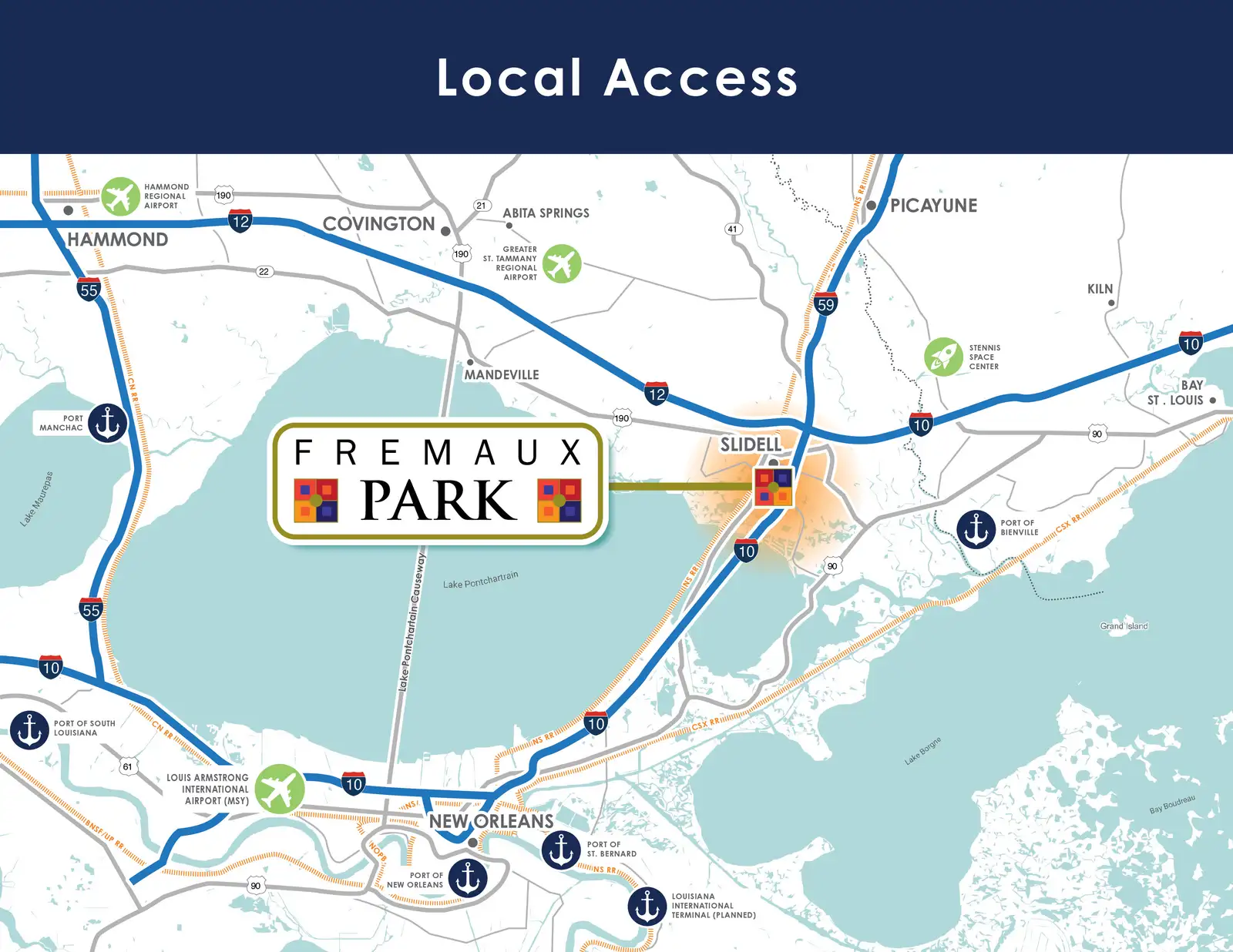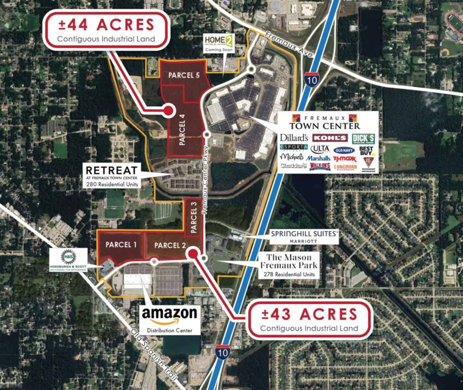 Fremaux Park is a planned development that consists of 280-acres with Interstate 10 visibility and access. The Park will include parcels for a variety of uses including multi-family, hotel, office, medical, and industrial. The property is adjacent to Fremaux Town Center which is a multiple phase retail shopping center development. Tenants include Dillard's, Kohl's, Dick's Sporting Goods, LA Fitness, Best Buy, T.J.Maxx, Michaels, PetSmart, ULTA Beauty, dressbarn, Versona Accessories, Rack Room Shoes and Lane Bryant. The entire park is zoned C-4 and the wetlands have been mitigated.