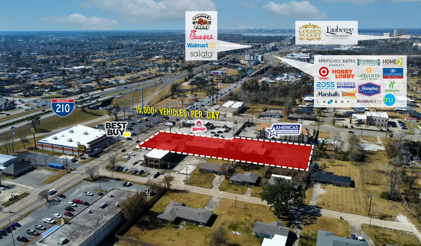 - Visibility from Interstate 210, W Prien Lake Road and Lake Street
